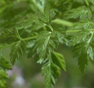 Le foglie fresche del cerfoglio si tagliano recidendo il picciolo alla base della pianta, e questo è il modo migliore per raccogliere questa aromatica, visto che consente lo sviluppo di nuovi germogli.