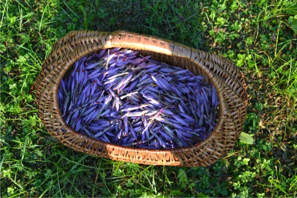 Quando si raccoglie questa spezia quello che interessa sono i pistilli, più correttamente chiamati stimmi: si tratta dei tre fili rossi che rappresentano insieme al polline l’apparato riproduttivo della pianta. Nell’orto conviene prendere tutto il fiore, si monderà poi in casa all’asciutto. Non è pensabile prendere direttamente gli stimmi perché sono molto delicati e si finirebbe per rovinarli.