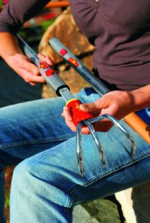 Strappare le erbacce vicino alle piante in genere si fa a mano o con piccoli tridenti, poterlo fare con uno strumento dal manico lungo ovviamente è un sollievo per la schiena.