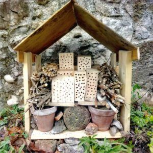 Di solito queste costruzioni vengono fatte per richiamare alcuni insetti “utili”, spesso si tratta di impollinatori oppure di predatori degli insetti che aggrediscono le piante. Alcuni di questi come vespe, api solitarie, ragni, coccinelle, forbici, scorpioni, si rifugiano negli anfratti o nelle fessure fra le pietre e il legno. Da qui l’idea di imitare quello che succede in natura e creare un ambiente che sia adatto ad ospitarli.