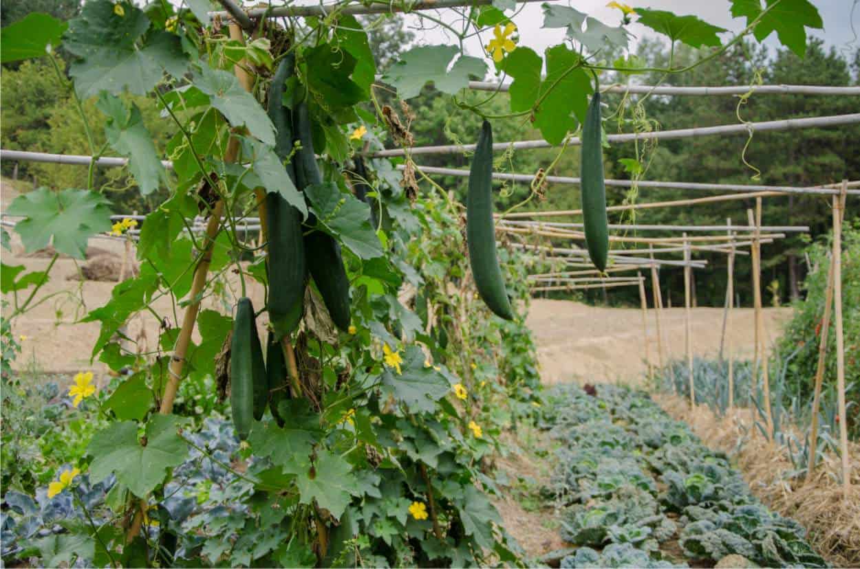 Per altre consociazioni, ad esempio cetrioli e fagiolini nani: trapiantare i cetrioli nel mezzo al bancale e seminare 1 fila di fagiolini nani da entrambe i lati.