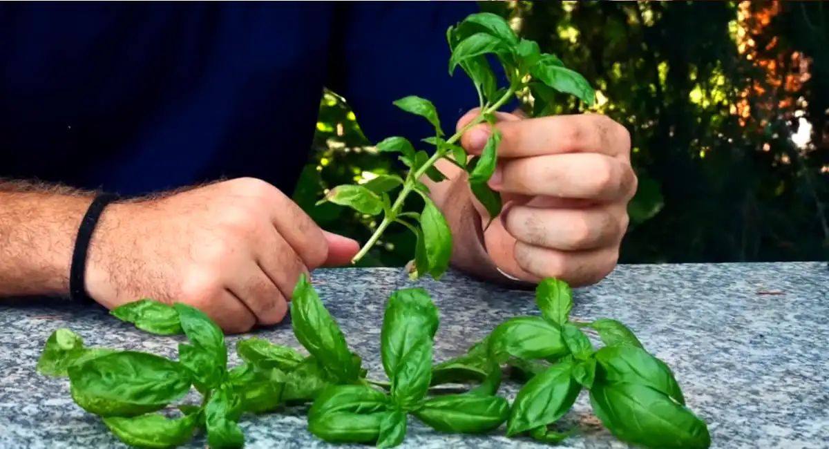 Sembra incredibile, ma il basilico può formare una piantina anche semplicemente partendo da una singola foglia.