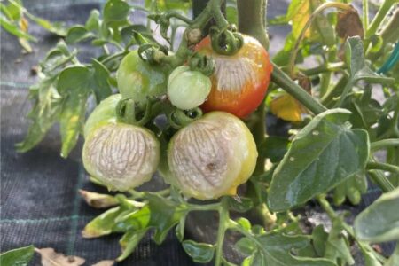 A parte il marciume apicale l’umidità è forse la maggior causa di malattia per i pomodori: se concentrata in un punto del frutto (ad esempio all’apice, oppure tra le righe dei pomodori costoluti) provoca facilmente necrosi dei tessuti, se stagna nel terreno mette la pianta in difficoltà in vari modi e induce marciumi e patologie funginee come la peronospora.