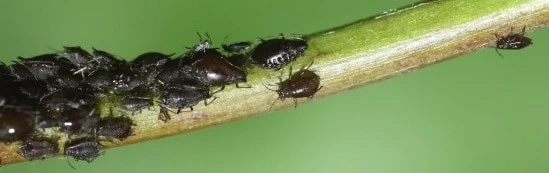 Afidi o pidocchi delle piante. Sono degli insetti molto piccoli che succhiano la linfa dalle piante dell’orto. Sono fastidiosi perché rilasciano una sostanza zuccherina chiamata melata che provoca spesso la fumaggine, malattia crittogamica, inoltre spesso trasmettono virosi alle piante. Le formiche spesso portano gli afidi sulle foglie, per cui in presenza di formiche cercate anche questi piccoli insettini. Approfondisci: difendersi dagli afidi.