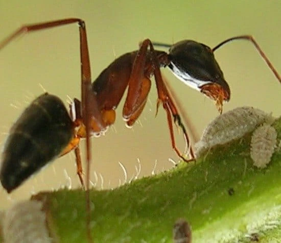 Sembra incredibile ma le formiche allevano letteralmente questi pidocchi delle piante allo scopo di raccogliere la melata (secrezione zuccherina che gli afidi rilasciano dopo essersi nutriti con la linfa delle piante). L’organizzazione delle formiche è ammirevole: durante l’inverno ospitano le colonie di afidi nel formicaio e in primavera li depositano sulle piante.