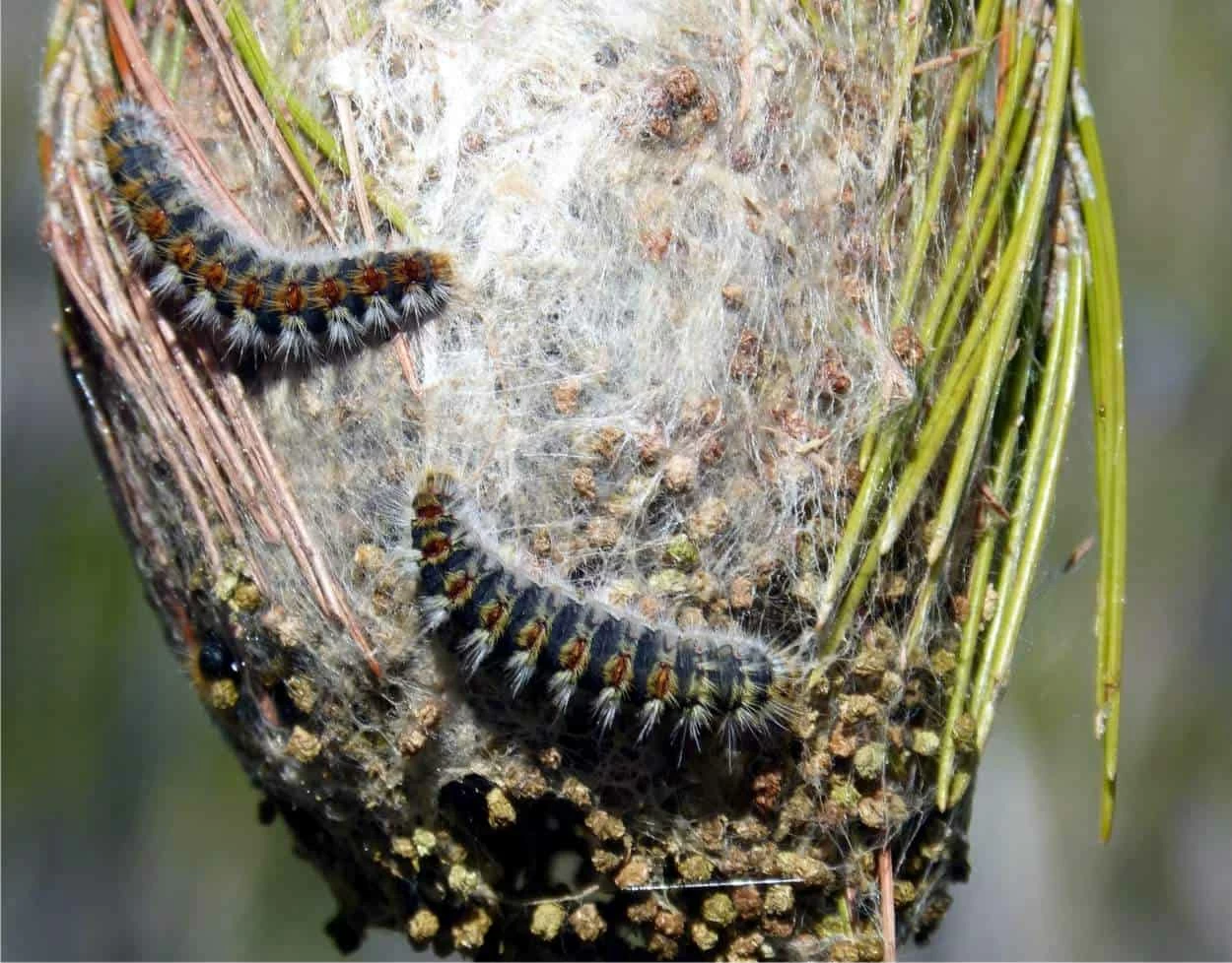 Le larve della processionaria si nutrono degli aghi delle conifere e possono compiere gravi danni sulle piante colpite, arrivando a provocare anche la perdita di tutti gli aghi.