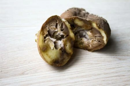 Il fusarium si combatte con la poltiglia bordolese, ma altrettanto importante per evitare il marciume secco è stare attenti ai ferretti, agli squilibri nell’apporto idrico e nella concimazione e a non danneggiare i tuberi durante la raccolta.