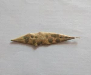 - Immergere un campione di foglie in una soluzione al 5% di idrossido di sodio o di potassio alla temperatura di 50-60 °C, per 3-4 minuti. Se le foglie sono state infettate, in queste condizioni caratteristiche tacche dell’occhio di pavone emergeranno.