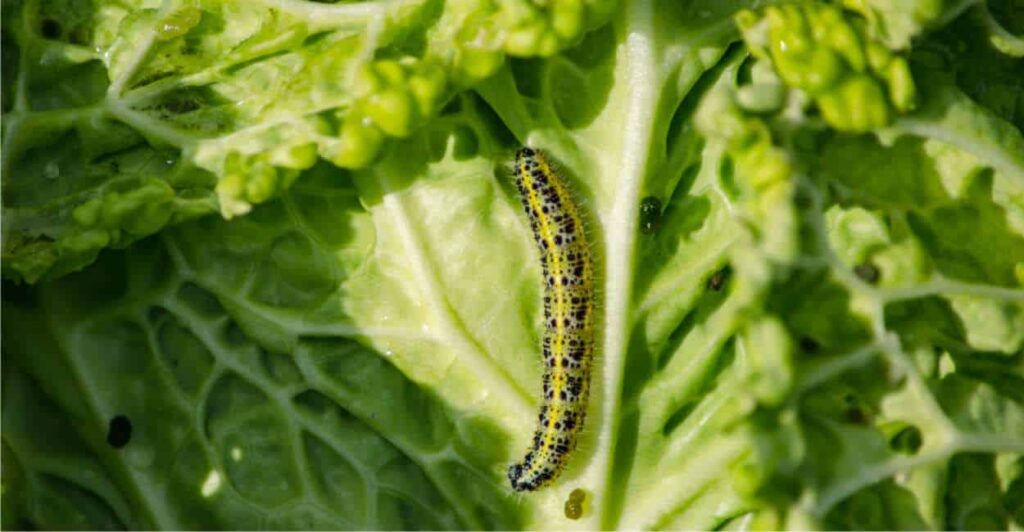 larva di cavolaia su foglia di verza Insetto Difendere l’orto dalla cavolaia di Matteo Cereda