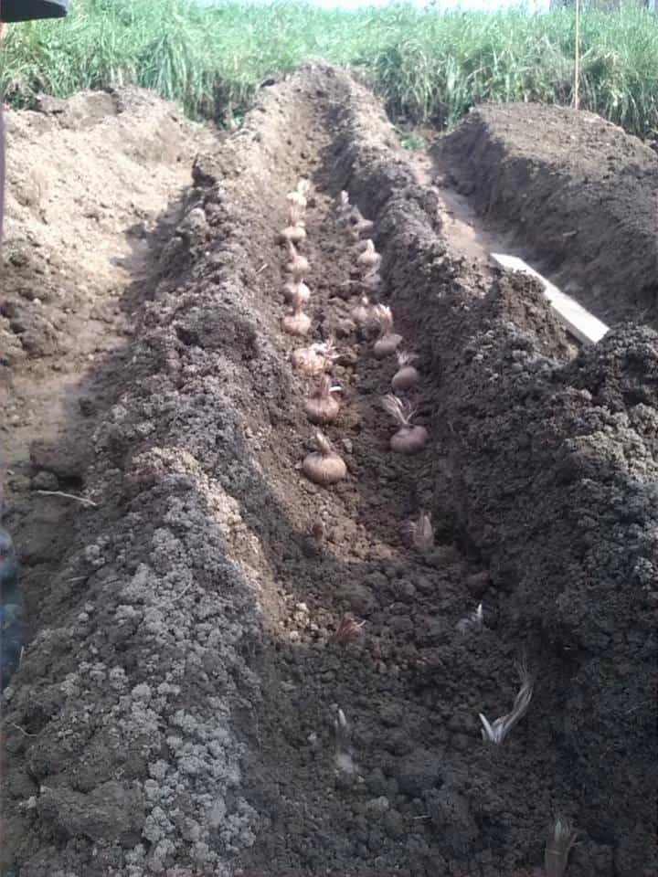 I bulbi raccolti devono essere tenuti in luogo buio e asciutto fino a fine agosto quando si farà il nuovo impianto. Per evitare malattie conviene controllare i bulbi attentamente e scartare quelli danneggiati.