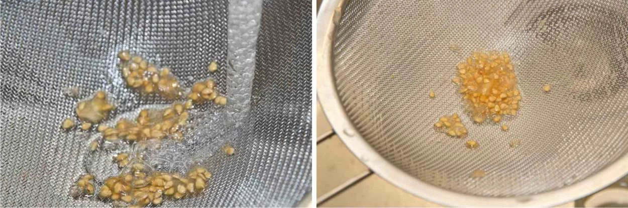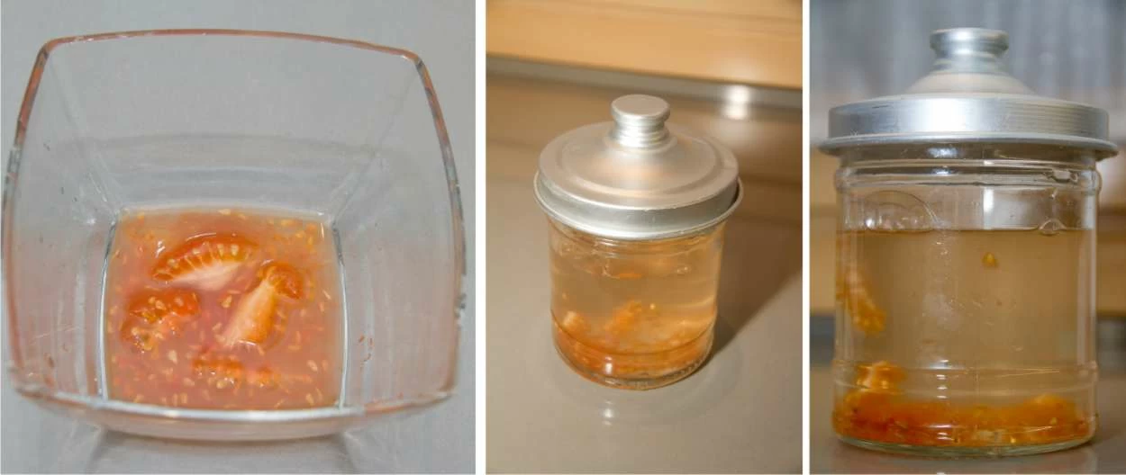 Dovremo lasciare a riposo gelatina e sementi all’ombra, in un luogo non troppo ventilato, per circa 3-4 giorni. Trascorso questo tempo, si noterà la formazione di uno strato superficiale di muffa maleodorante. Questo è il segnale che i semi sono pronti per essere lavati e seccati.