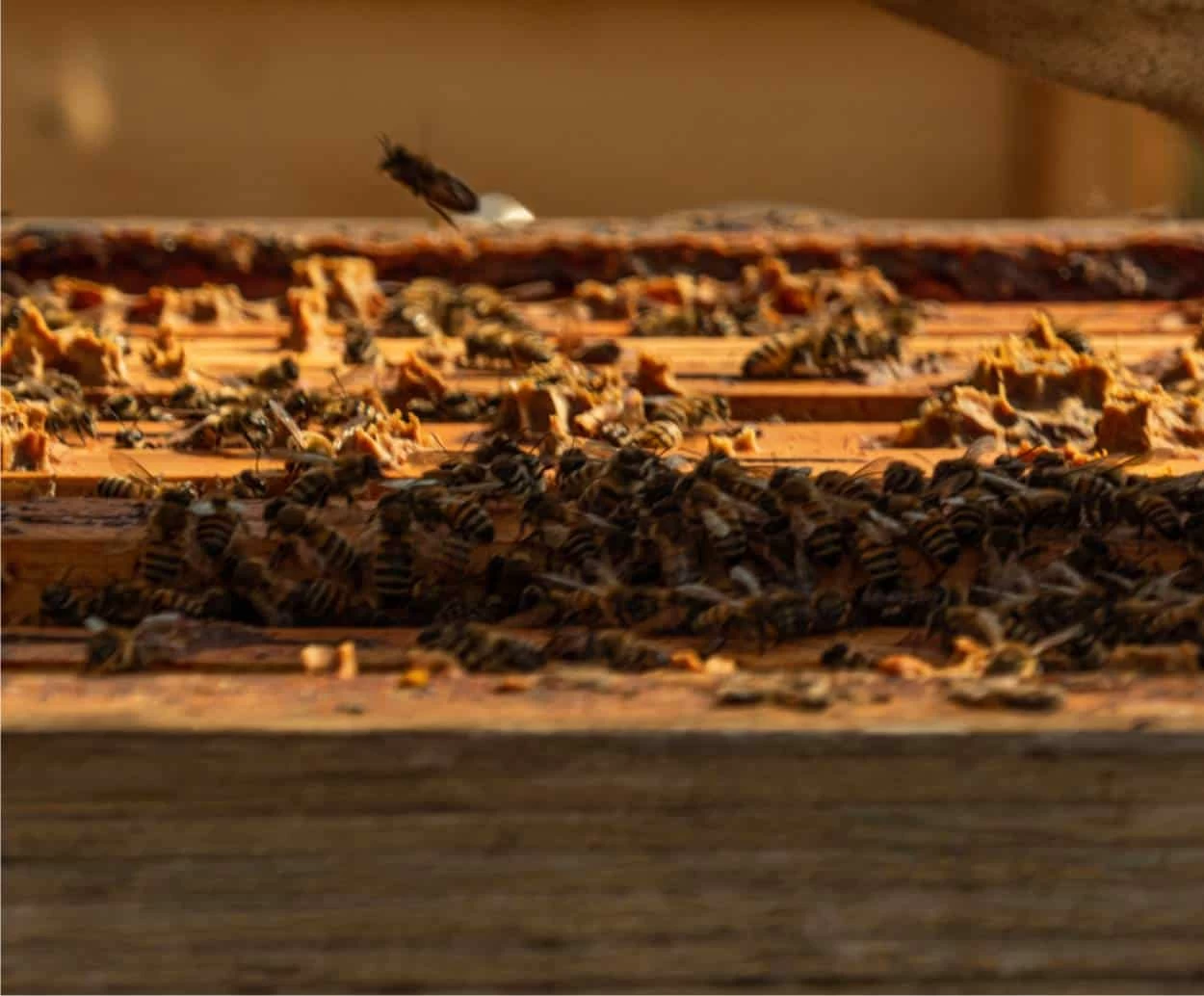 A volte i calabroni attaccano anche dentro l’alveare, attratti dal miele, in questo caso lo sciame si difende, ma si tratta di uno stress importante per l’arnia, che causa la moria di numerose api guardiane.
