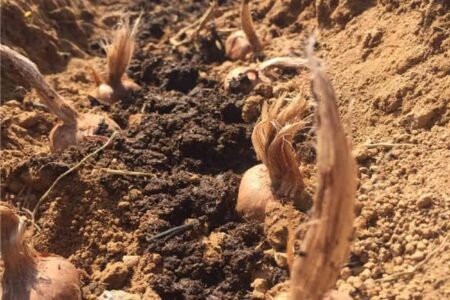 Piantare è molto semplice: si apre un solco dritto, in cui andremo a disporre i bulbi alla giusta distanza. Si mettono i cormi con la punta rivolta verso l’alto (conviene premerli leggermente nella terra perché non si capovolgano riempiendo il solco) e si copre.
