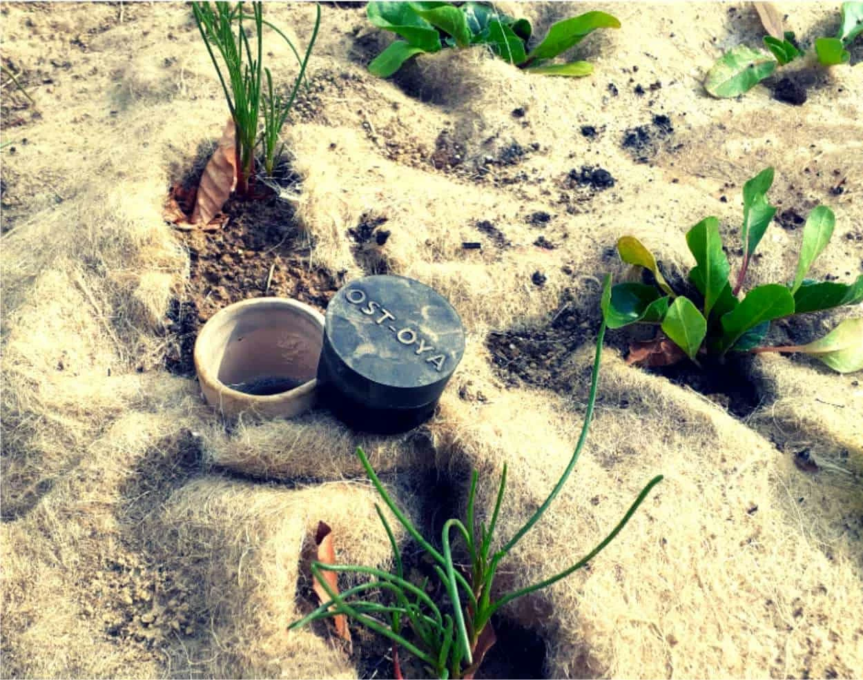 Finita la “non-pubblicità”, ecco due parole sulle olle Ost-Oya: sono in argilla, da 2,5 litri, diffondono acqua in un raggio di circa 45 cm attorno a loro, vanno riempite ogni 3-7 giorni.