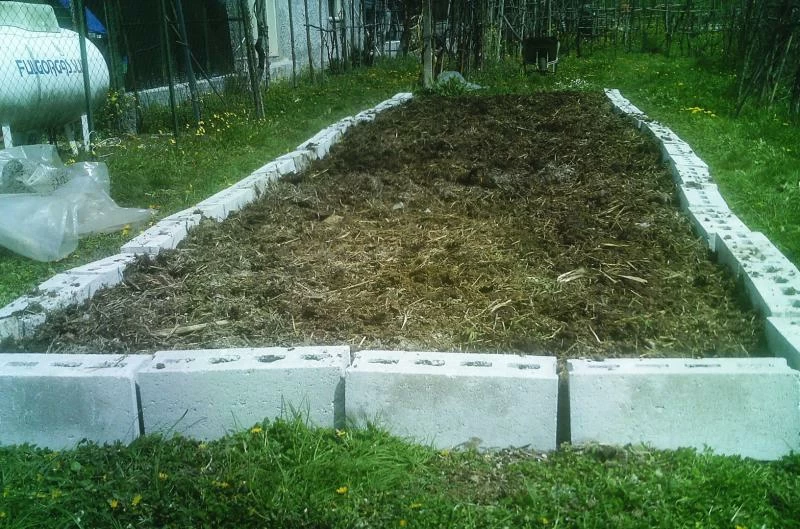 Le lettiere sono semplicemente degli spazi dove mettere il letame e i lombrichi, per cui non occorre alcun materiale. Possiamo per comodità, nella gestione degli spazi, delimitare il perimetro con assi di legno o mattoni.