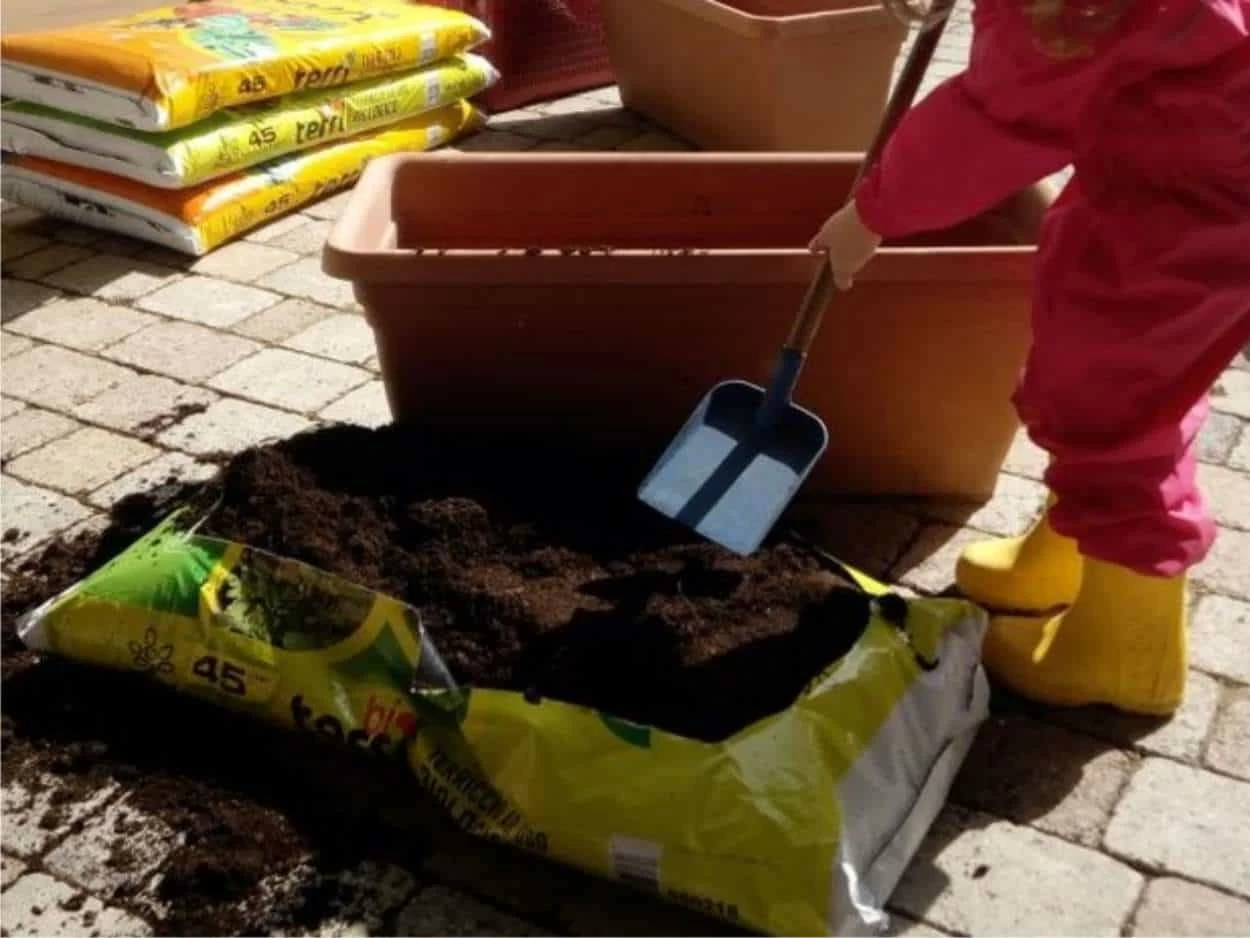 Durante l’allestimento dell’orto è importante dare la possibilità ai bambini di giocare con i materiali, soprattutto col terriccio, sia per sollecitare la sensorialità, sia per costruire un’esperienza diretta e matura con questo materiale insolito.
