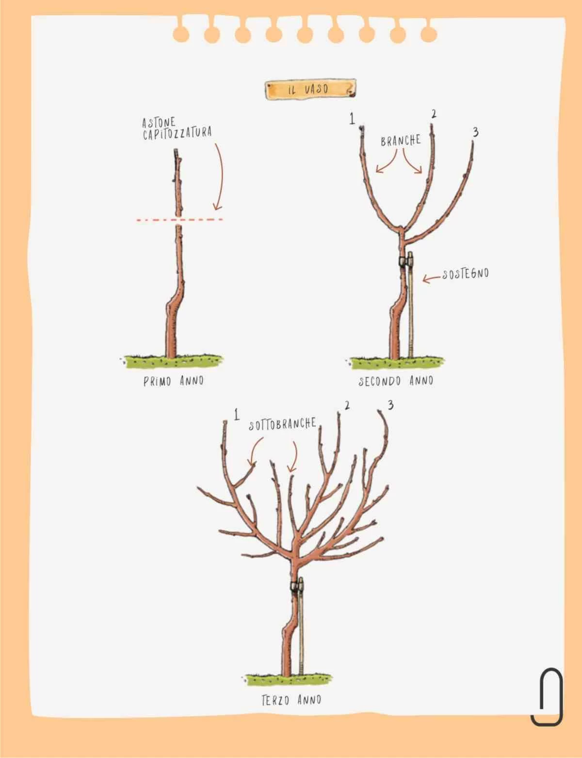 Per avere una pianta a vaso conviene impostarla da subito, con la potatura di allevamento.