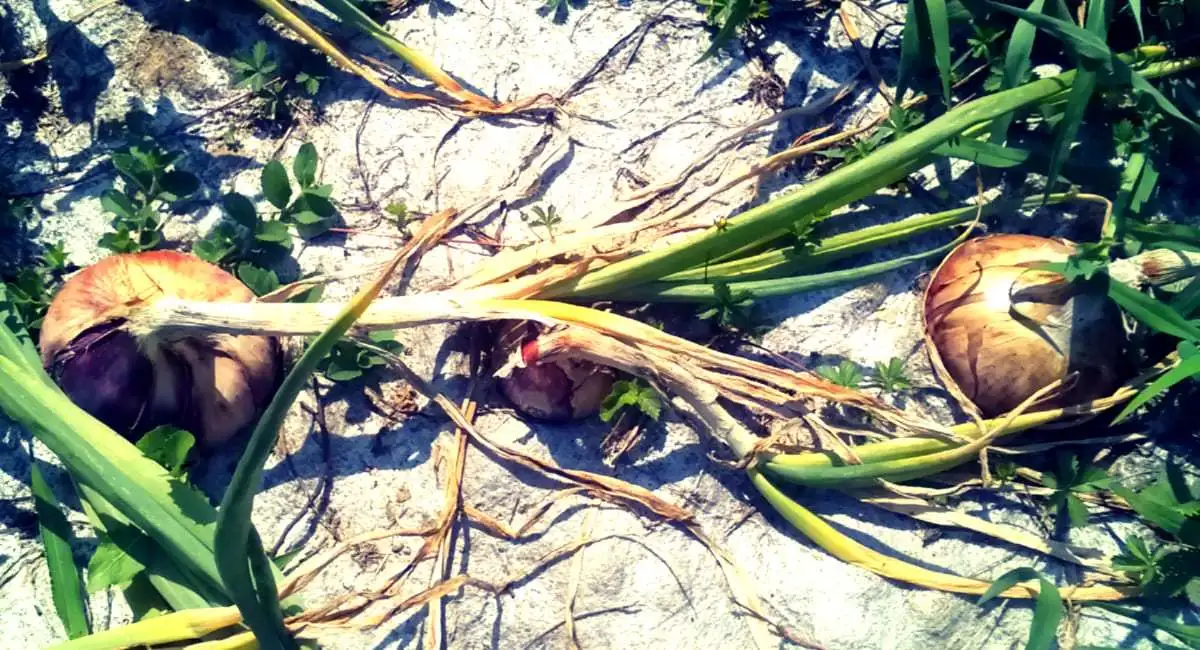Per capire quando raccogliere tuttavia non dobbiamo guardare la cipolla, ma dobbiamo guardare la pianta: quando lo stelo ingiallisce e comincia a piegarsi bisogna raccogliere.