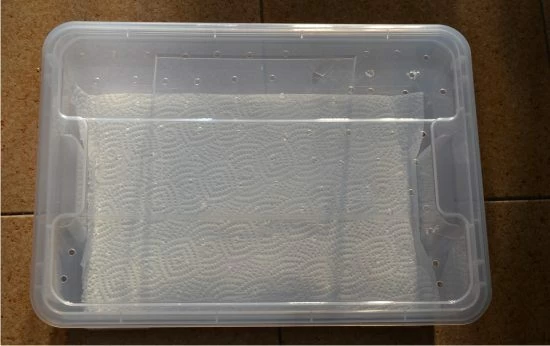 Per far germogliare i semi nello scottex serve per prima cosa una scatola di plastica trasparente, che è l’ambiente migliore per il nostro piccolo semenzaio. La scatola dovrà avere un coperchio con qualche foro per far circolare l’aria, senza esagerare in modo da tenere umidità e temperatura ottimali all’interno. Meglio tanti fori piccoli che pochi fori grandi.