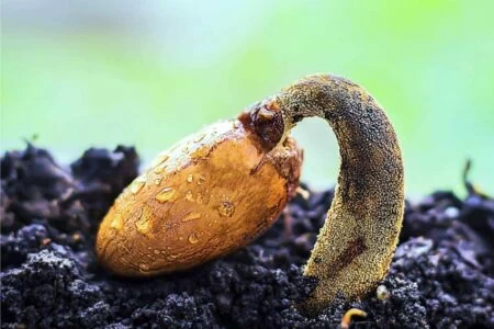 L’umidità ammorbidisce la scorza del seme e col tempo permette l’uscita del germoglio. Può succedere che la piantina non riesca a rompere il guscio del seme e si sviluppi internamente generando anche le due foglioline (cotiledoni), la piantina in questo caso è destinata a morire, se non si tenta di liberare il germoglio, operazione molto delicata. Il bagno del seme in infuso di camomilla riduce questo problema notevolmente.