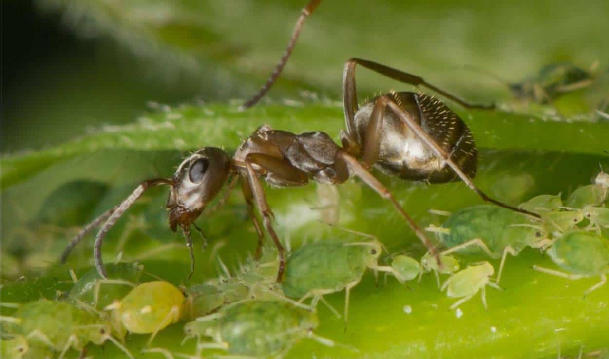Sembra incredibile ma le formiche allevano letteralmente questi pidocchi delle piante allo scopo di raccogliere la melata (secrezione zuccherina che gli afidi rilasciano dopo essersi nutriti con la linfa delle piante). L’organizzazione delle formiche è ammirevole: durante l’inverno ospitano le colonie di afidi nel formicaio e in primavera li depositano sulle piante.
