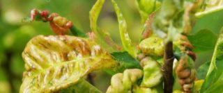 - Bolle sulle foglie. Le foglie sono le prime a manifestare evidenti bollosità; questi sintomi aumentano con l’avanzamento del tempo, fino ad interessare tutta la superficie fogliare. I tessuti parenchimatici interessati dal deterioramento assumono uno spessore e una turgidità più intensa del normale e si ricoprono di una formazione vellutata biancastra. La pigmentazione diventa rosso-vinosa o clorotica, assumendo un aspetto ceroso. Con il trascorrere del tempo, queste porzioni del lembo fogliare andranno in contro ad una veloce degenerazione fino alla caduta della foglia stessa.