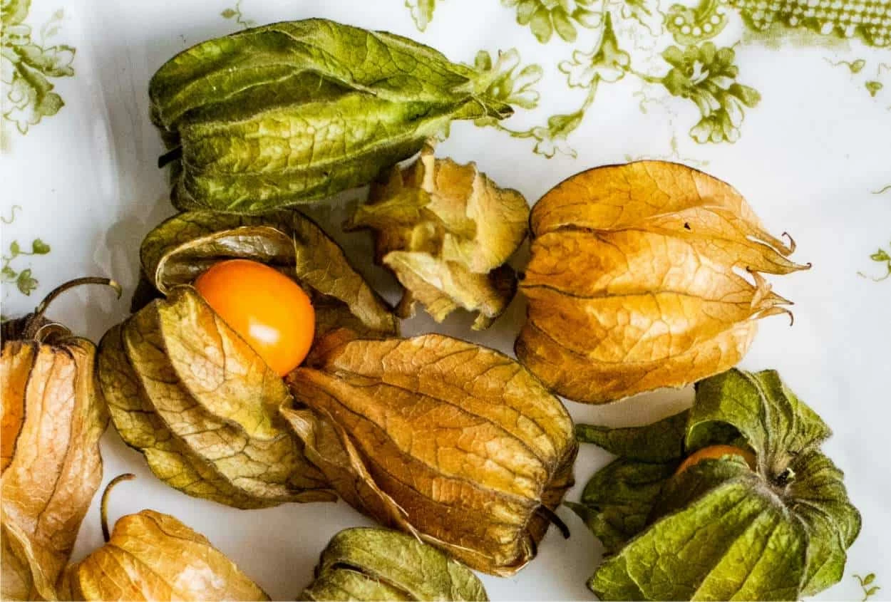 Riconoscere la maturazione delle bacche è semplicissimo, osservando la brattea che li riveste esternamente: quando questa membrana si secca e appare come fragile carta giallo-marrone, all’interno troveremo l’alchechengi maturo, con la buccia di colore arancio vivo.