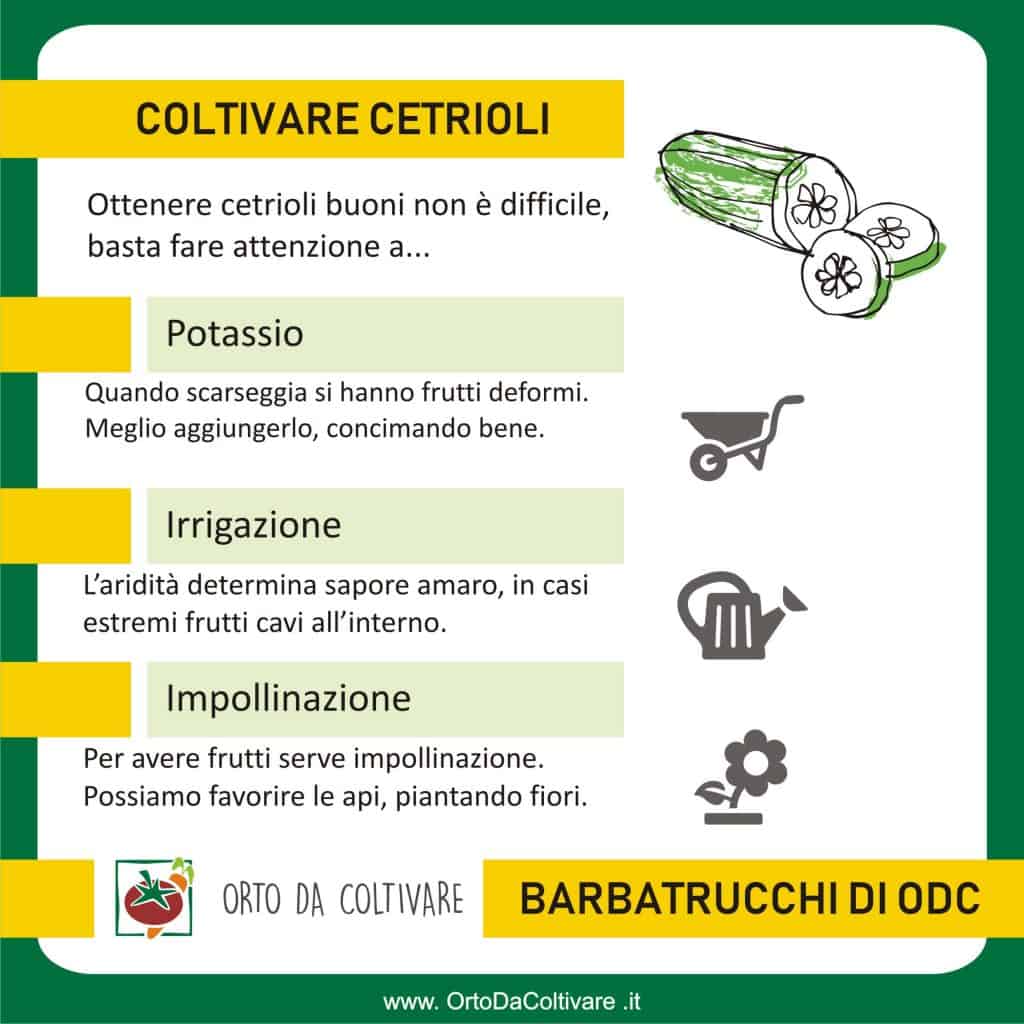 Clima indicato. Il cetriolo è una pianta che vuole caldo, richiede quindi temperature elevate, mentre teme il gelo. Per questo è un tipico ortaggio estivo.
